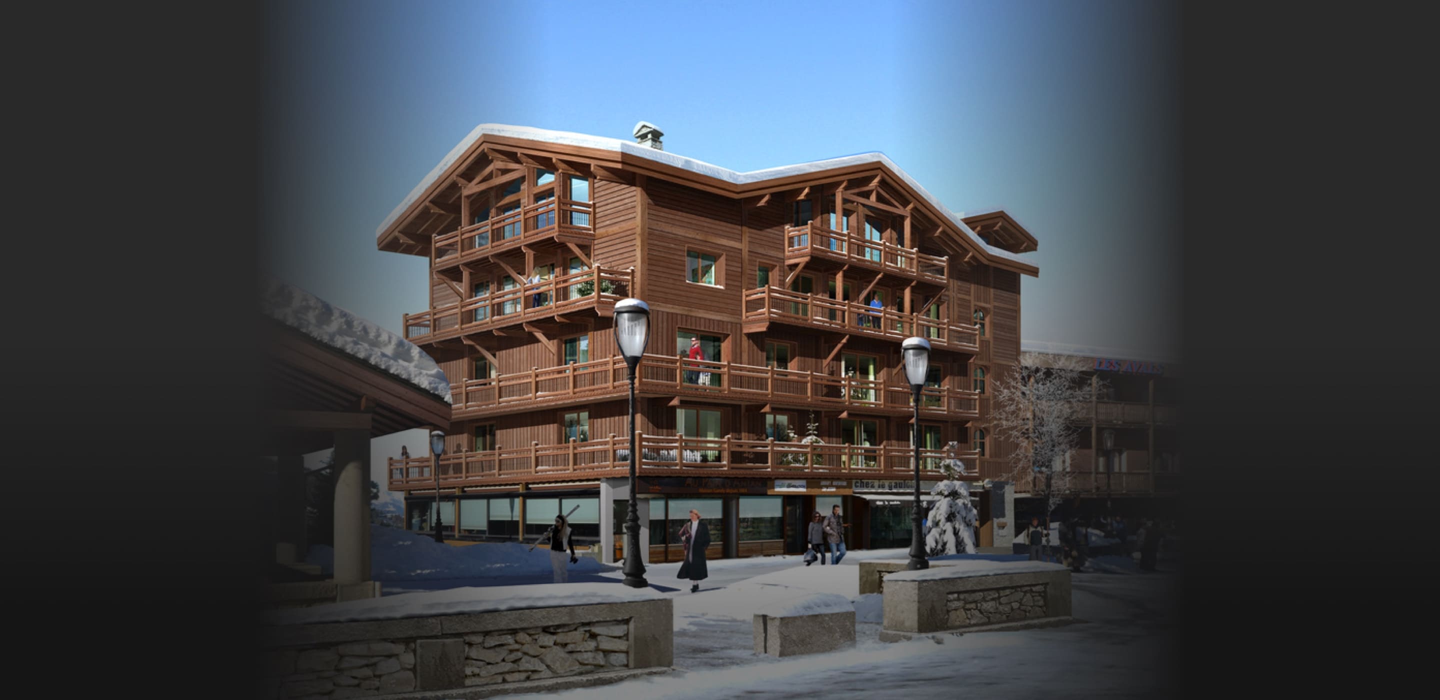 Le Ceylan, en plein cœur de Courchevel 1650 Moriond. Surélévation de 2 étages du bâtiment créant ainsi 3 logements. 3 appartements offrant une ambiance cosy où le bois tient sa place, au centre de la station et du départ de ski avec vue imprenable sur la vallée de Courchevel.